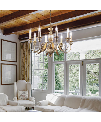 Živicové telo. Ručne vyrobené kovové ramená a listy. Ručne zdobené zlatými lístkami a antickou povrchovou úpravou.