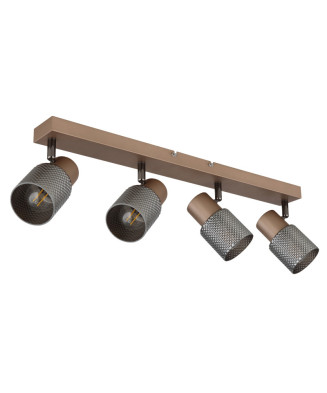 Stropné svietidlo zaujme svojim skvelým dizajnom. Na čiernej stropnej základni z kovu (27x9cm) sú dve pätice E27 s valcovým tienidlom (Ø9cm) v dymových farbách. S objímkami E27 máte možnosť určiť si zdroj svetla, tým aj farbu a intenzitu svetla.