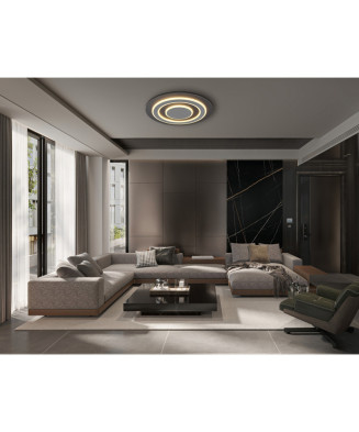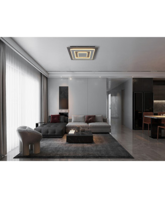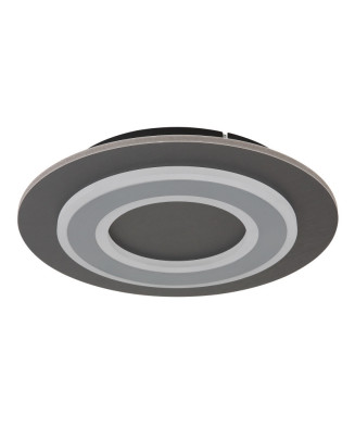 Stropné svietidlo JAYDEN ponúka moderné riešenie pre vaše osvetlenie. Obdĺžniková nástenná doska v elegantnom dizajne je zvýraznená dvomi kruhmi. Telo je vyrobené z antracitového brúseného plastu. Tienidlo je zo sivého brúseného kovu a bieleho akrylu. Svetelný zdroj LED poskytuje svietivosť 2000 lúmenov s teplotou farby 3000 Kelvinov. Toto moderné svietidlo je ideálne pre miestnosti, ktoré chcú ponúknuť modernú atmosféru.