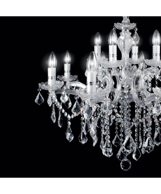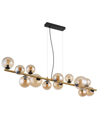 Závesné svietidlo/Luster Ideal lux 075181 FLORIAN SP18 ORO 18xE14 40W zlaté.Kovový rám s ozdobnými sklenenými prvkami. Prívesky s osemuholníkmi a brúsenými krištáľovými kvapkami. Dostupné v čírom skle a zlatom alebo chrómovanom kove.