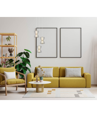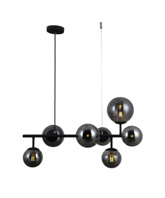 Závesné svietidlo je vyrobené z kovu v matnej čiernej farbe a skla v dymovej farbe. Rozmery závesného svietidla sú DxŠxV: 900x200x1400 mm. S objímkami E27 (max.60W) máte možnosť vybrať si vlastný svetelný zdroj a tým si určiť intenzitu a farbu svetla. Odporúčame LED zdroje pre ich úsporu energie a dlhú životnosť.