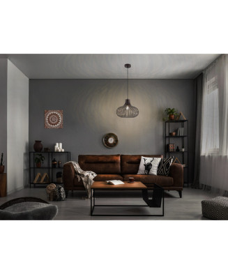 Závesné svietidlo MATEO vyniká svojím výrazným industriálnym šarmom a rustikálnou eleganciou. Tri kovové tienidlá v hrdzavej farbe visia z individuálne nastaviteľných závesov zavesených na centrálnej okrúhlej konzole a vytvárajú harmonický zdroj svetla. Robustný kovový rám v hrdzavej úprave dodáva svietidlu autentický vintage vzhľad, vďaka čomu je ideálne pre moderné lofty alebo interiéry vo vidieckom štýle. S priemerom 500 mm poskytuje MATEO veľkorysé pokrytie – ideálne nad jedálenské stoly, kuchynské ostrovy alebo do obývacích priestorov. Obkímky E27 ponúkajú maximálnu flexibilitu pri výbere zdroja svetla – teplá biela farba pre útulné večery alebo neutrálna biela farba pre jasné osvetlenie priestoru